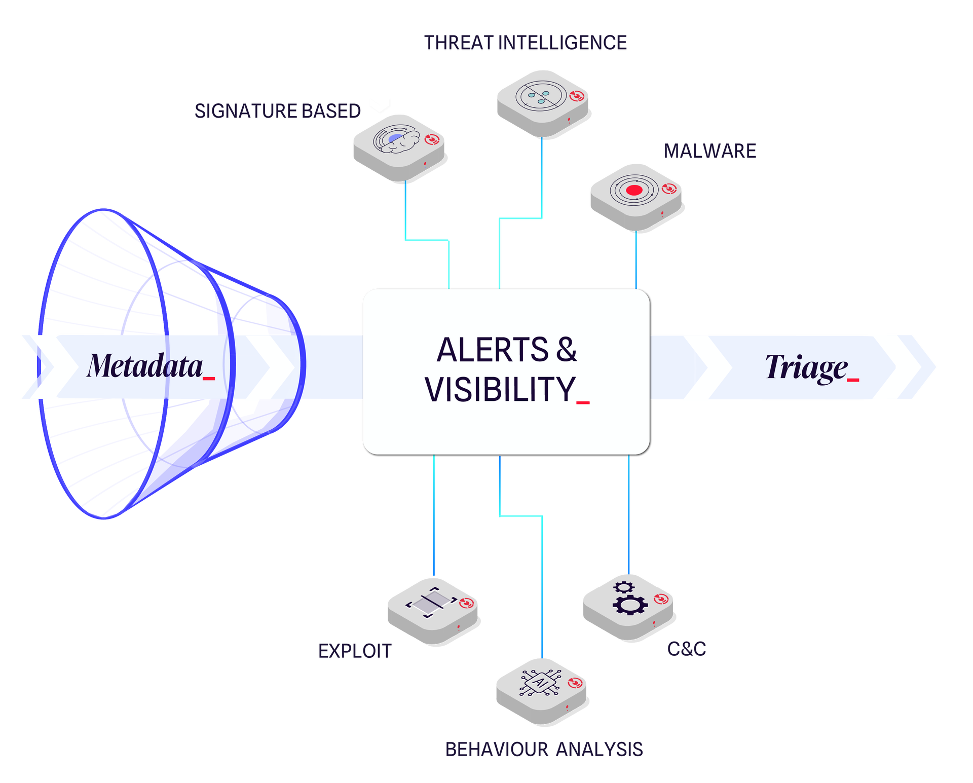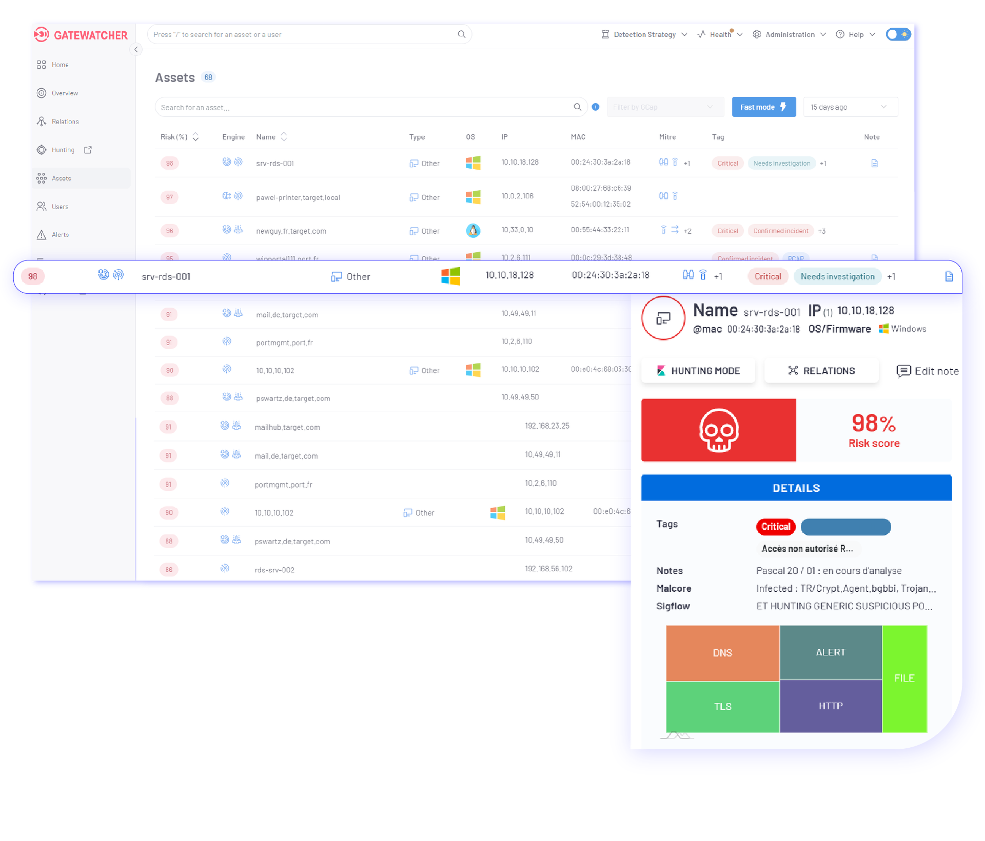 Powered by multiple detection engines covering the entire kill chain, it passively analyzes network activity to identify relevant signals  including the most stealthy and provides reliable contextualization to support informed future decisions.